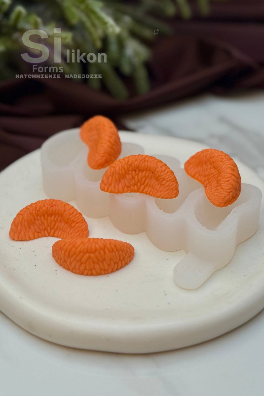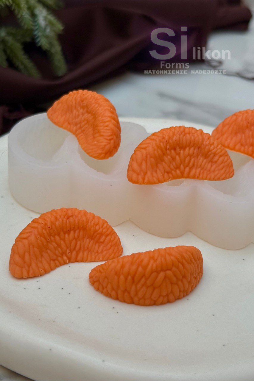 Przedstawiamy naszą najnowszą formę silikonową w kształcie realistycznych cząstek mandarynki.