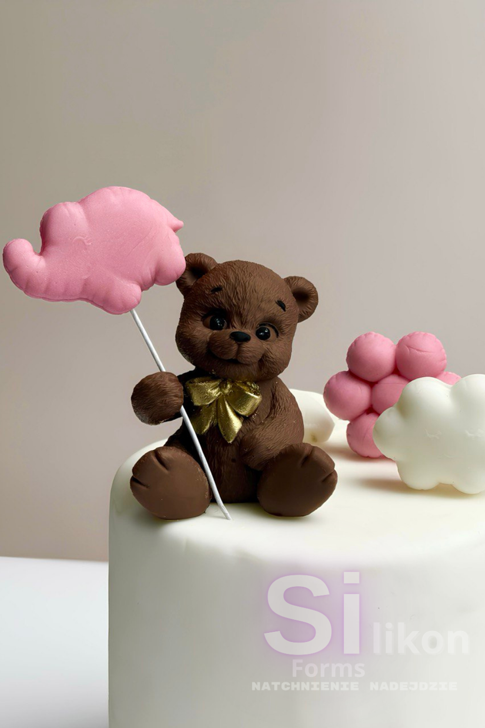 Miś z Rączką do Dekoru, to urocza figurka, która podbije serca dzieci i dorosłych! Złota kokarda dodaje elegancji, a specjalnie zaprojektowana łapka pozwala na kreatywne dodatki – możesz włożyć do niej balonik z masy cukrowej, cyfrę na roczek, lizak lub inne dekoracje!